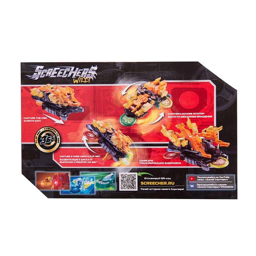 Единственная в своем роде игрушка. Скричер-дрифт демонстрирует самую долгую и сложную трансформацию из возможных! Машинка разгоняется, захватывает один диск, прокручивается вокруг своей оси, захватывая еще три диска, делает кувырок и самостоятельно трансформируется прямо в воздухе!