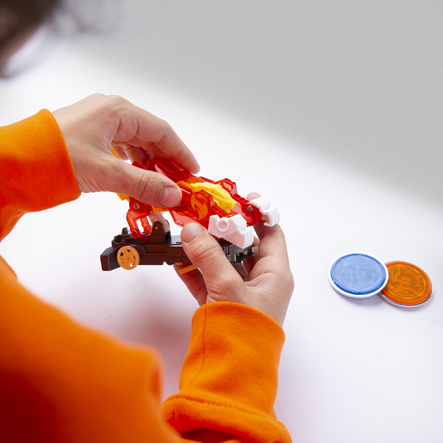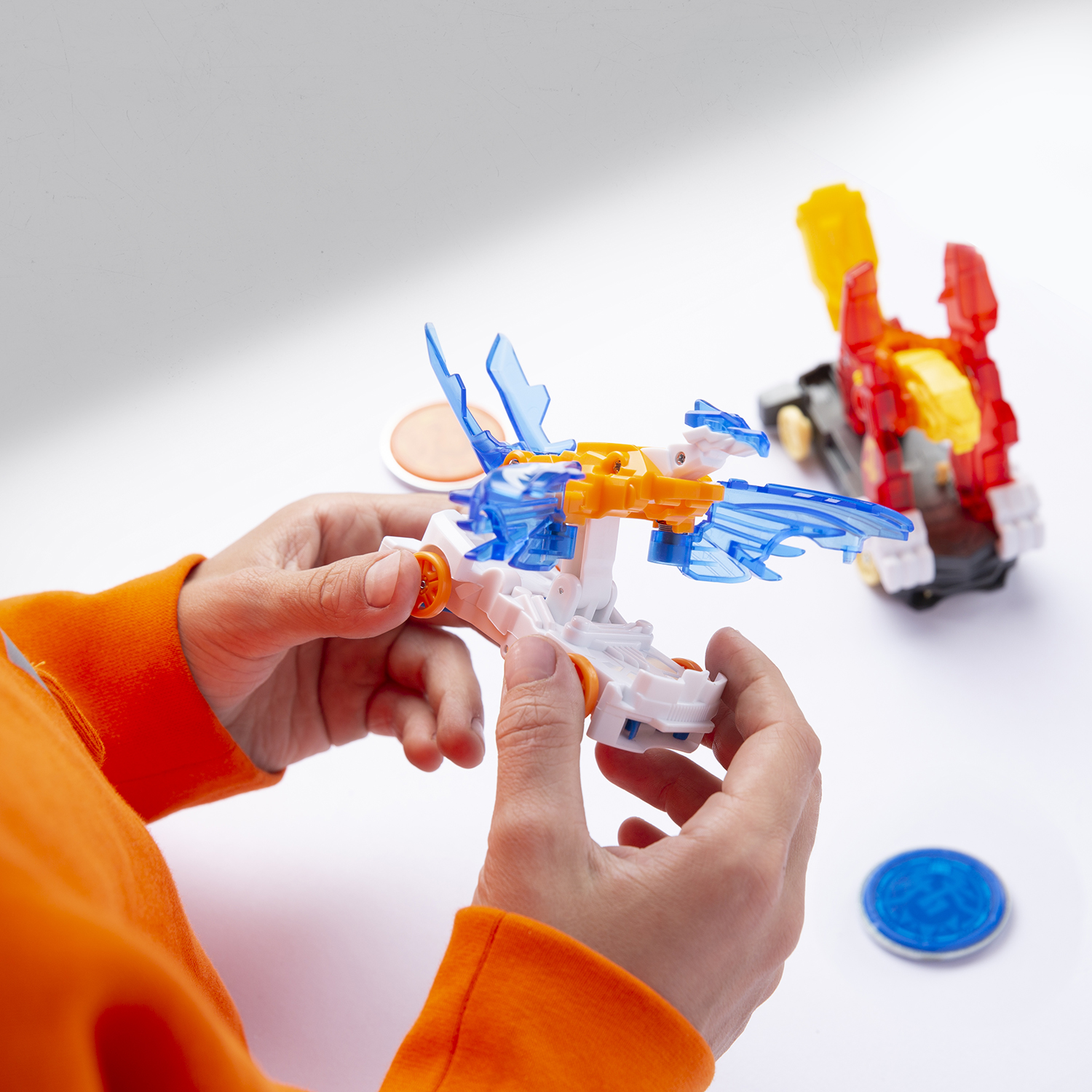 Можно самостоятельно выбирать элемент трансформации. Усиленный скричер-диск, скричер-кар для продолжения баттла в гонке, а также минискричер! Он тоже делает кувырок на 360° и трансформируется без помощи диска.