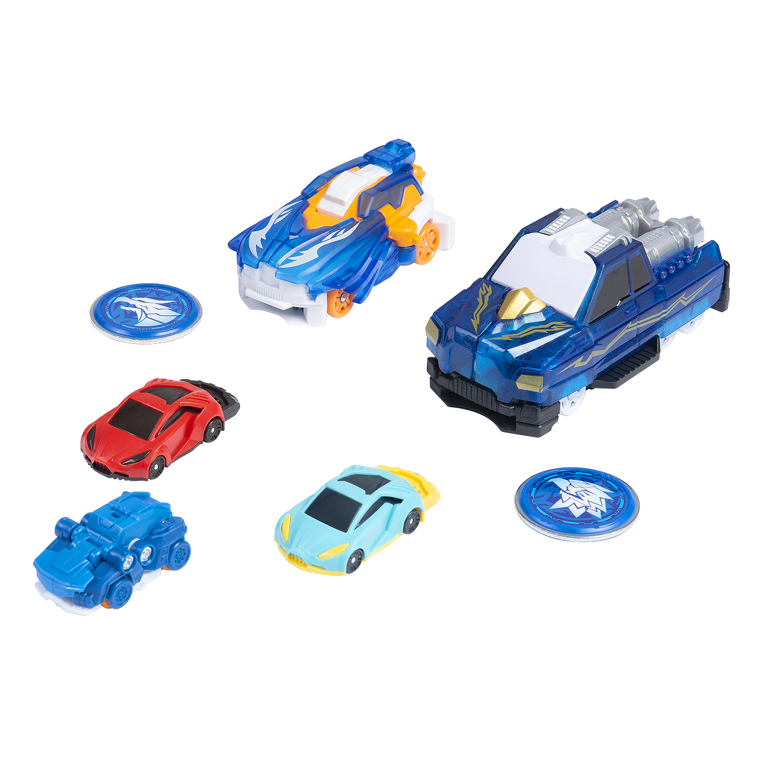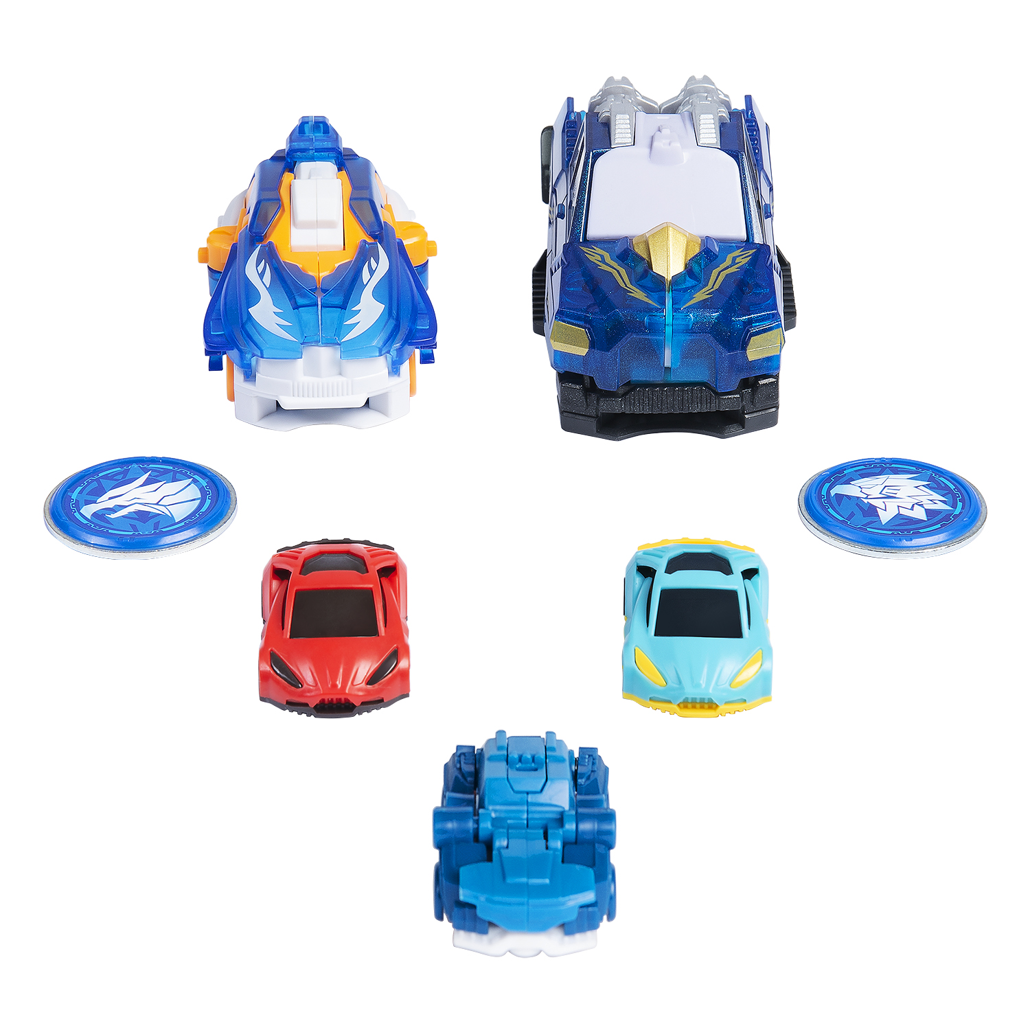 В набор входят 2 машинки-трансформеры (24х13х9 см) и (11х8х14 см), 2 энергетических диска, 2 скричер-кара, минискричер. Игрушка упакована в коробку с окном (36х25х10 см).