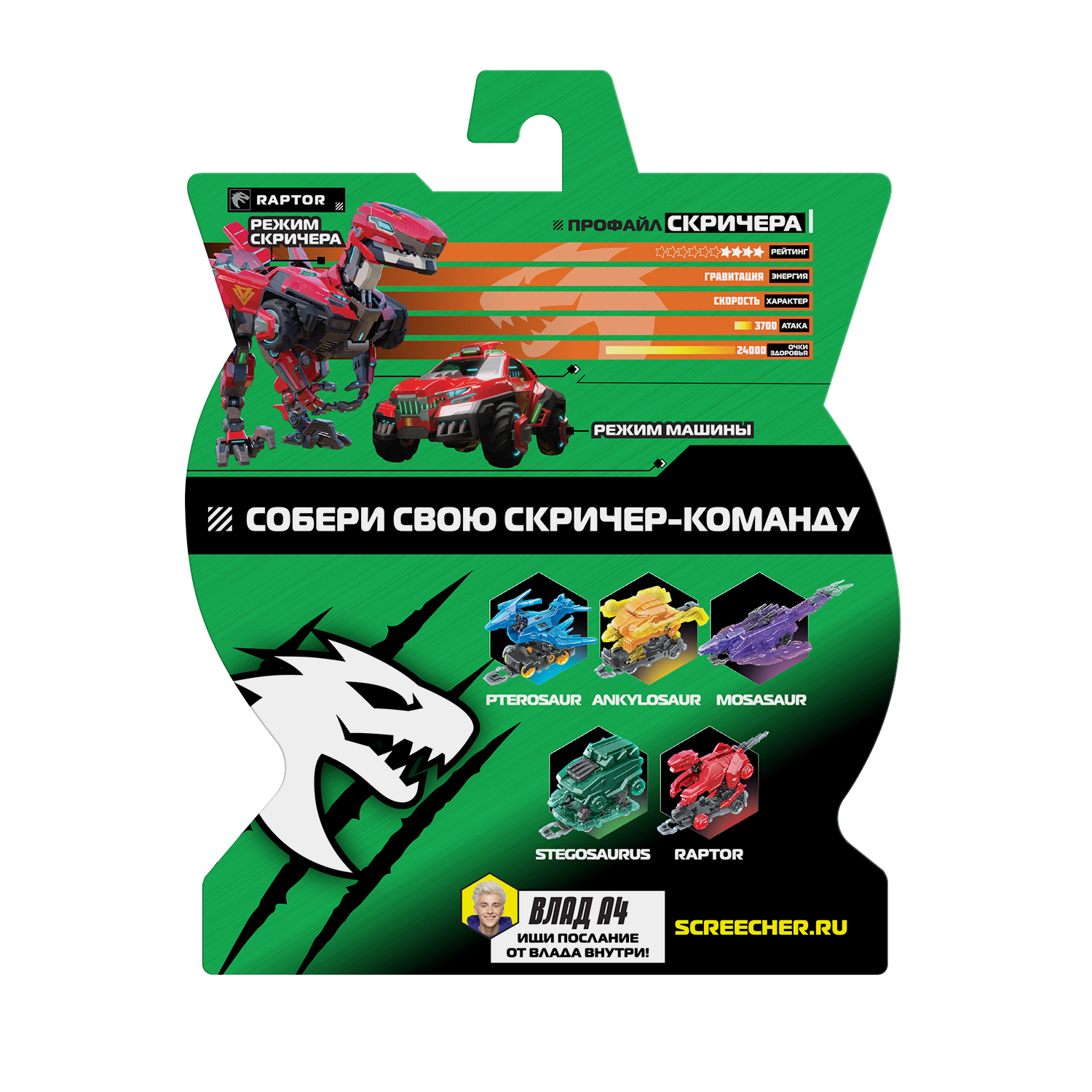 Машинка-трансформер Раптор - быстрый хищник велоцираптор. Характер Раптора – скорость, энергию ему дают силы гравитации.