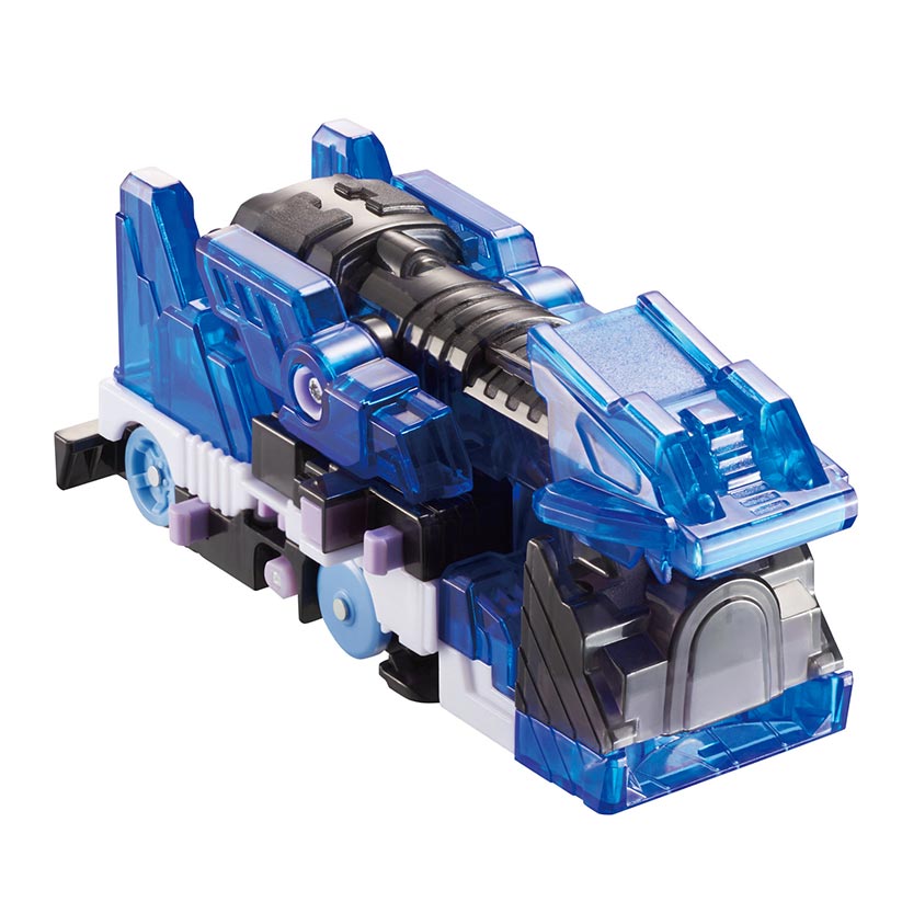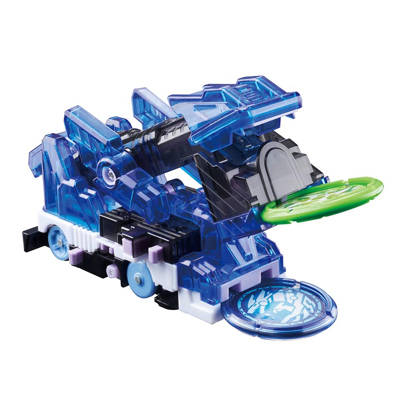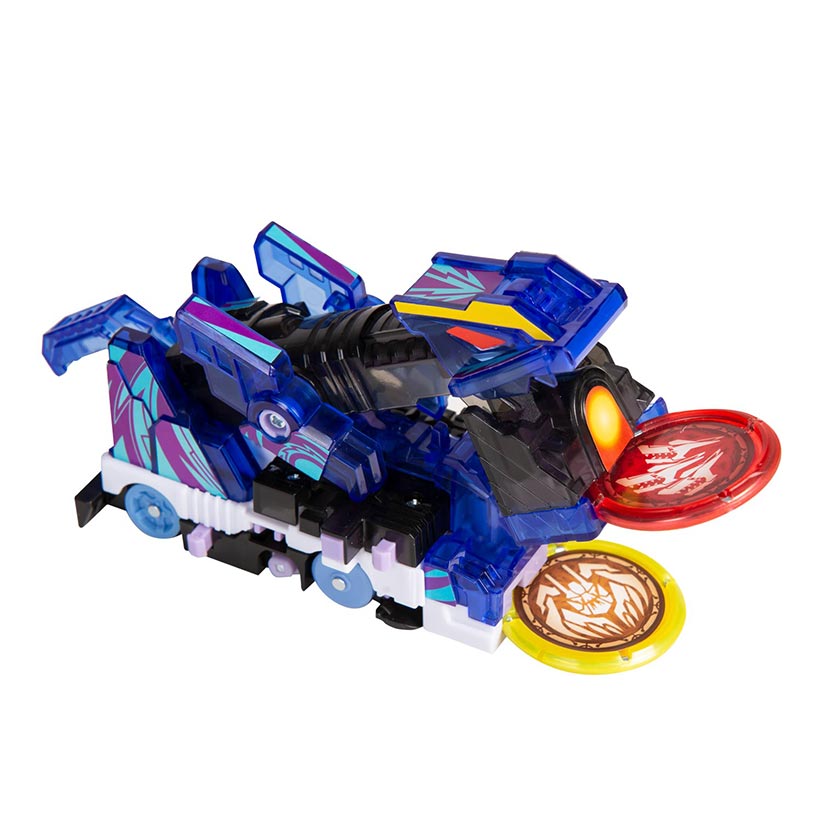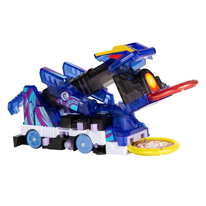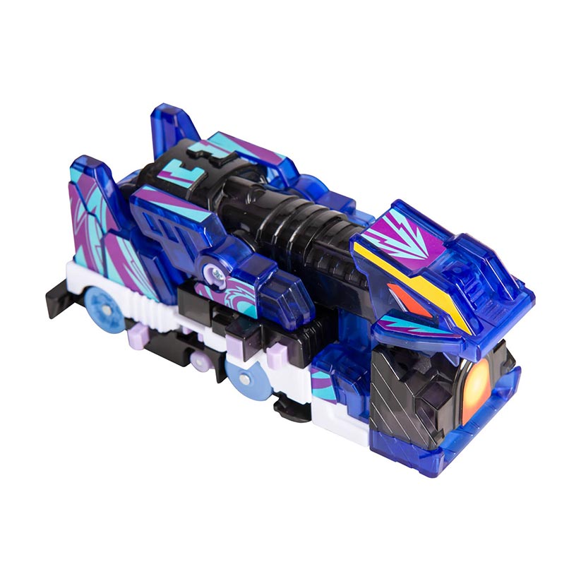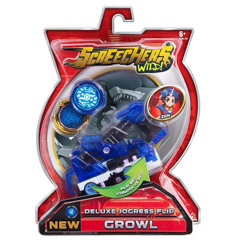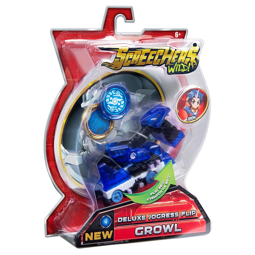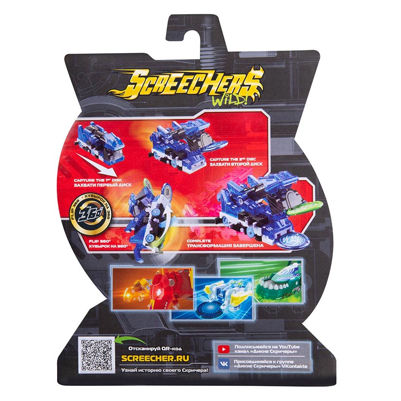 Машинка разгоняется, ловит два специальных диска один за другим, делает кувырок и самостоятельно трансформируется прямо в воздухе. А если соединить всех скричеров Линейки 6 вместе, то у скричер-гонщика появится возможность запустить секретную тройную трансформацию.
