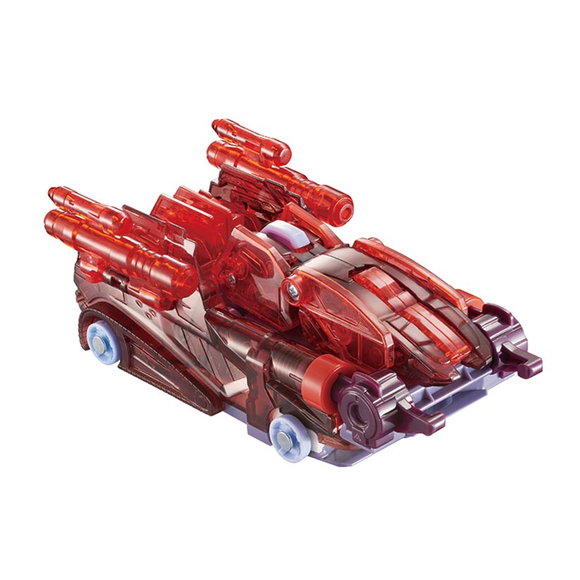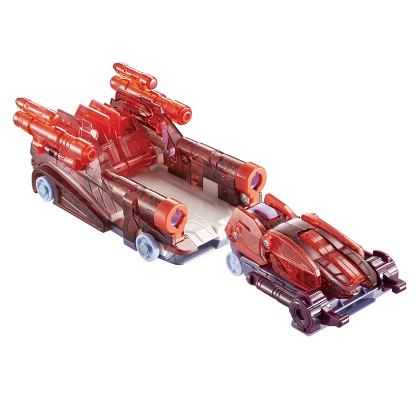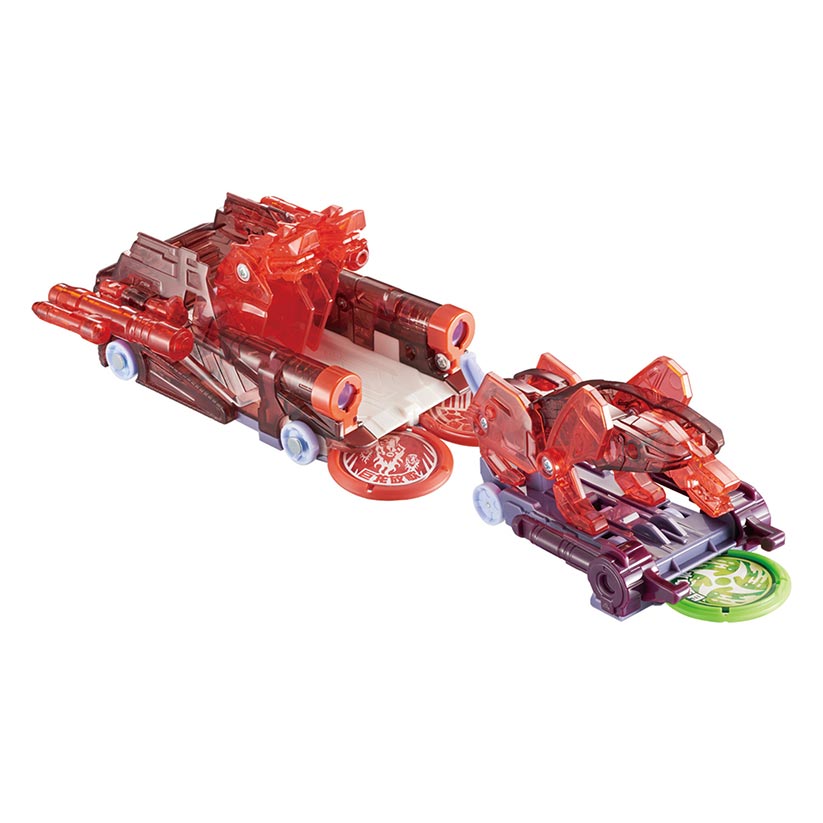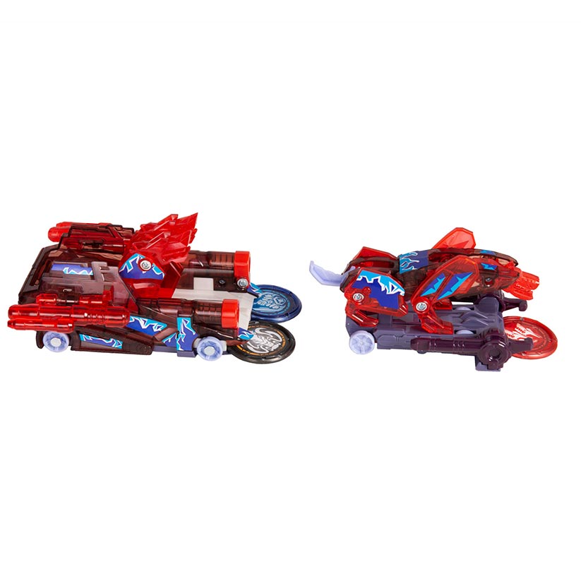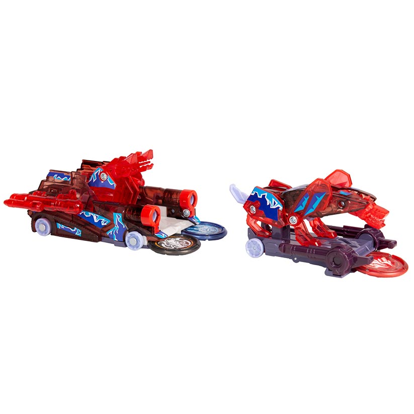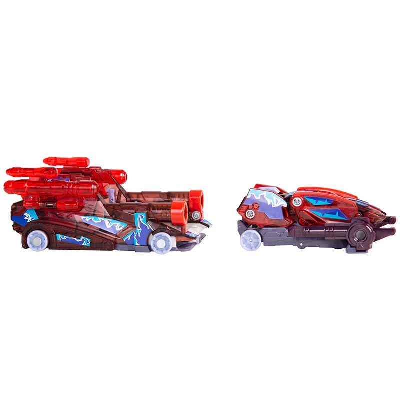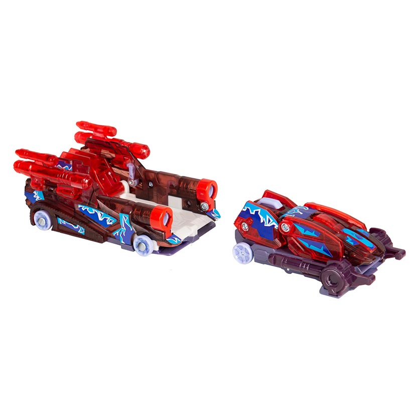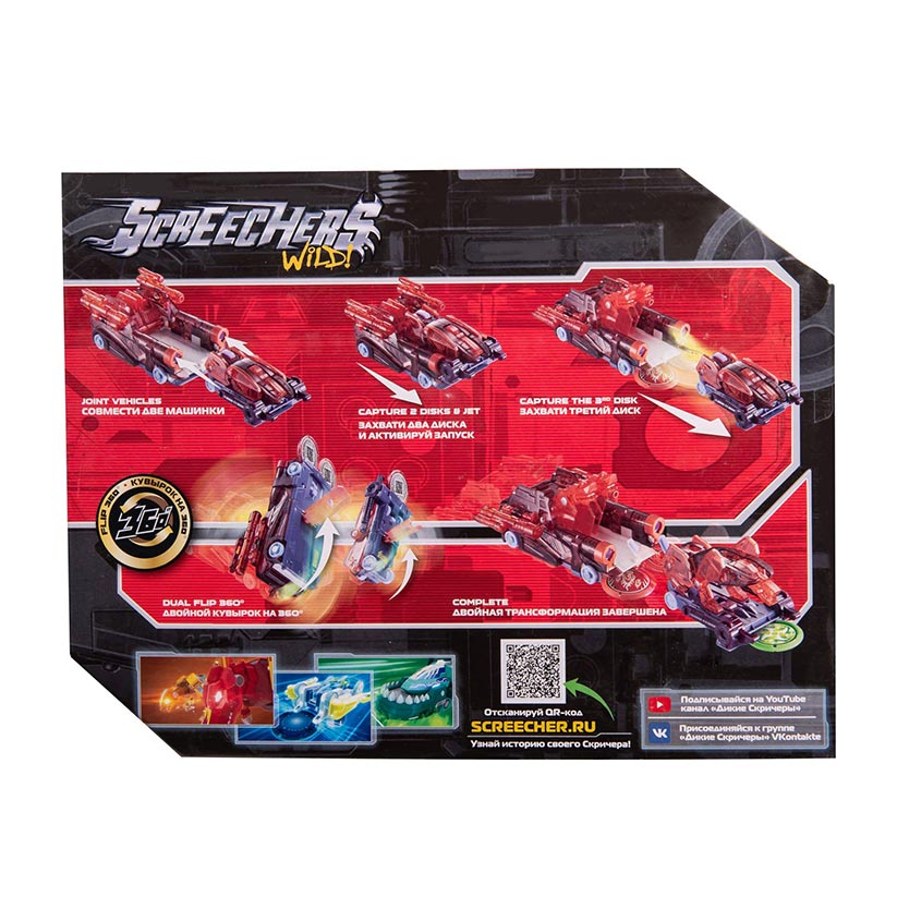 В игровой набор входит две машинки сразу – одна из них захватывает два диска, катапультирует вторую машинку, и они одновременно трансформируются прямо в воздухе!